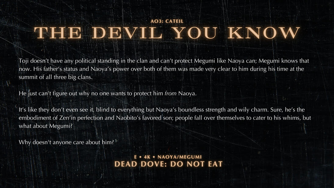 dead dove do not eat. please check all Ao3 warnings and tags before reading.